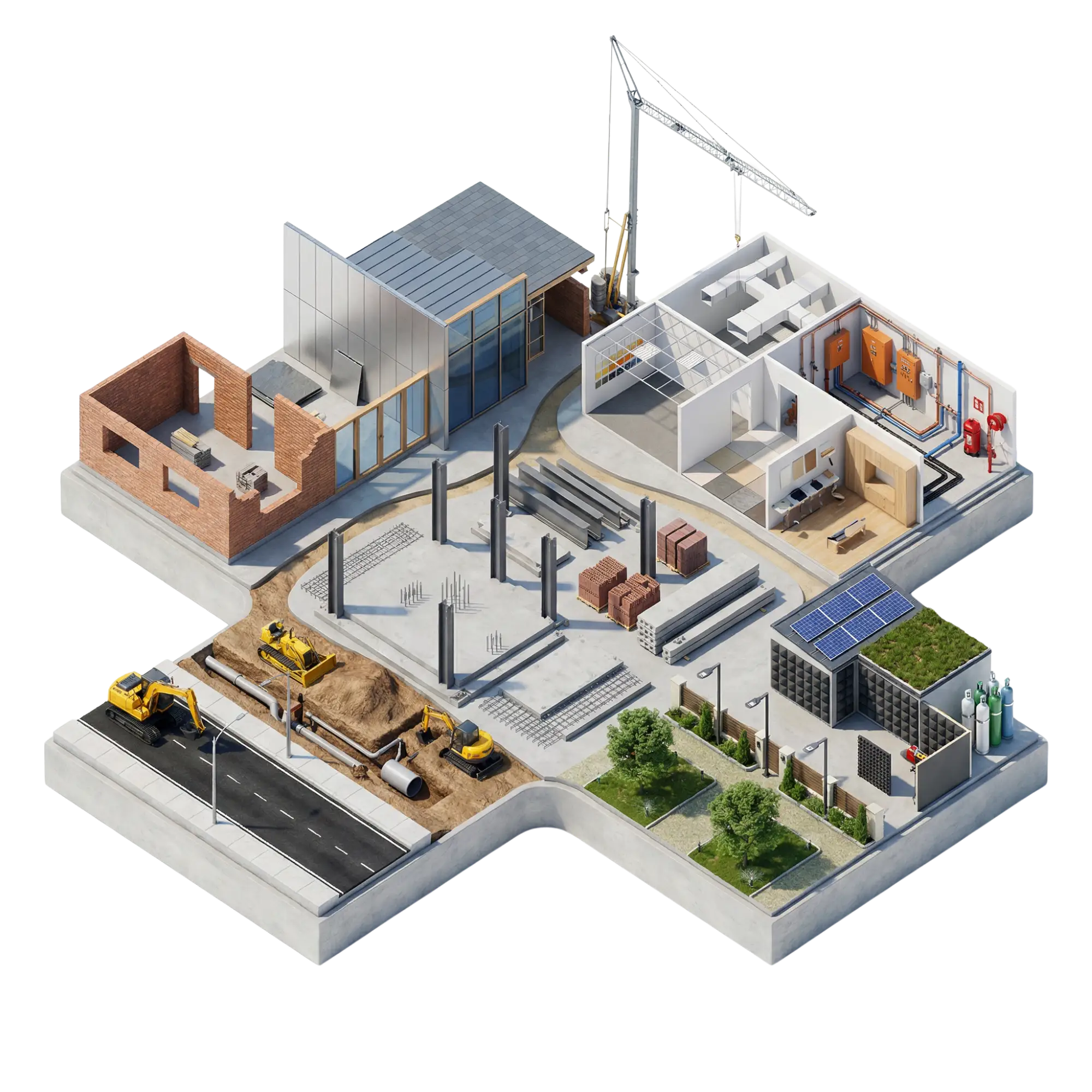 Blockwork • Brickwork • Cladding • Façades • Windows/doors • Roofing • Waterproofing
